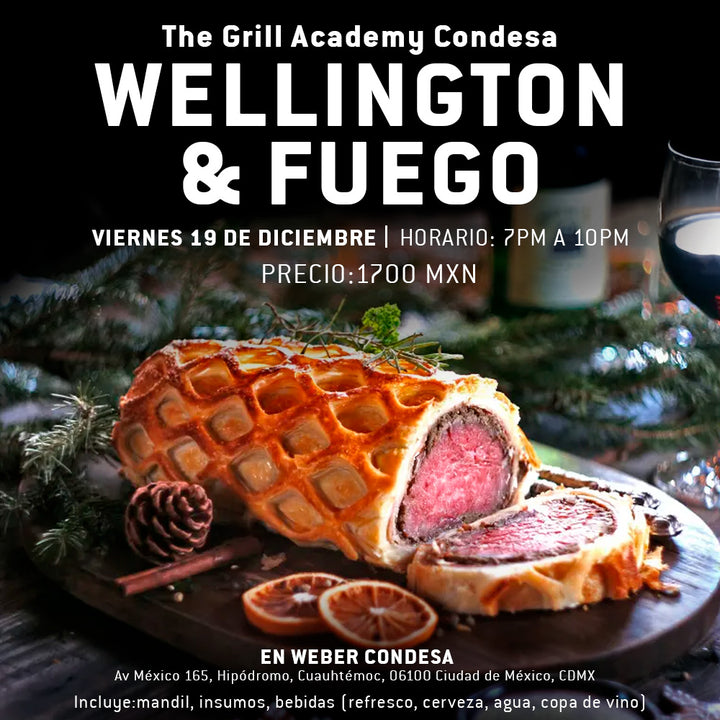 conoce las técnicas para encender el fuego, tiempos de cocción, temperaturas para diferentes platos y prepara los especiales navideños y de temporada que traemos en este taller especial de Wellington & Fuego. ¡Ideal para principiantes, expertos o amantes de la comida en asadores!