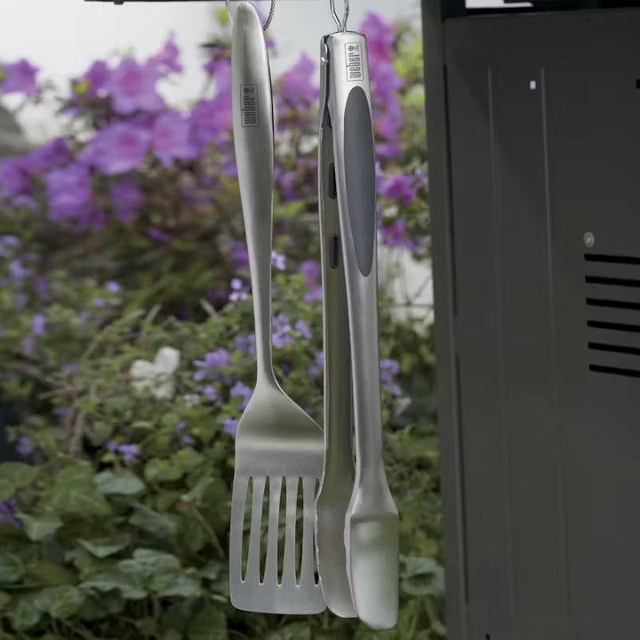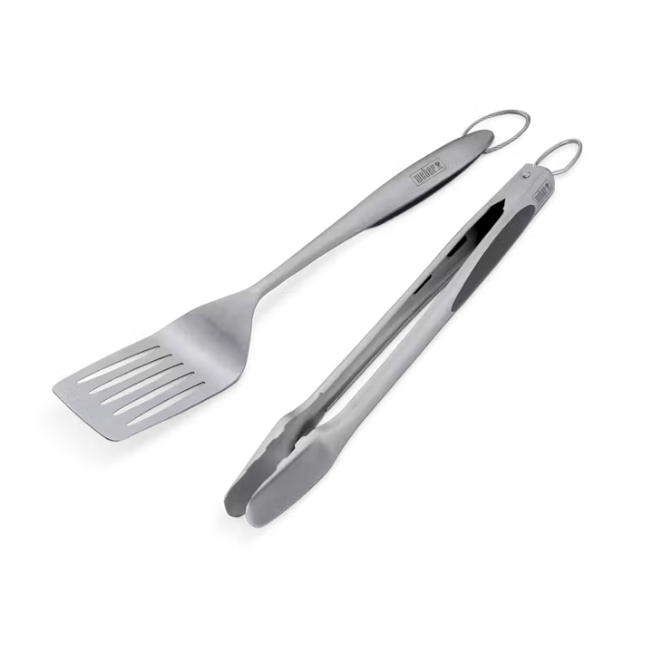 Unas pinzas y una espátula: la pareja ideal. Para voltear hamburguesas o salchichas, para pasar el pollo a la cerveza de la bandeja a las parrillas de cocción… la espátula y las pinzas son las herramientas perfectas ya que cuentan con la función de bloqueo, haciéndolas imprescindibles para cualquier parrillada.