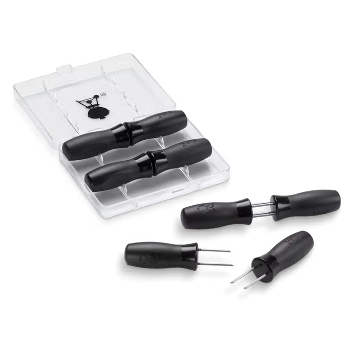 Los elotes asados con mantequilla son indispensables para cualquier día de campo. El Set de pinchos para elotes incluye ocho pinchos de gran resistencia con mango de nylon, para que manipular y untarles mantequilla a los elotes más grandes sea tan fácil como darles el primer bocado